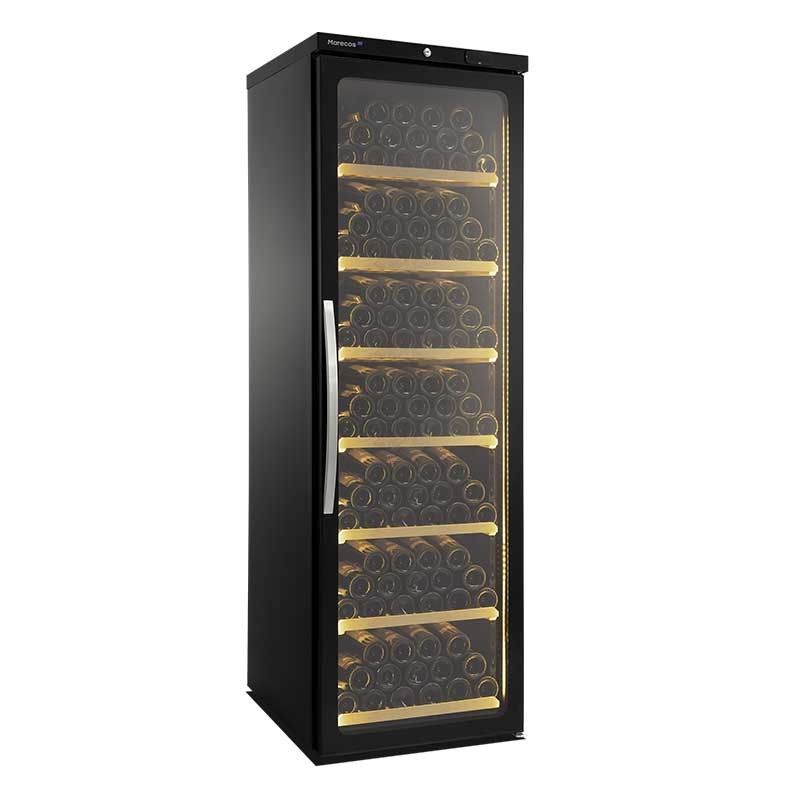 Estos equipos cuentan con sistema antivibración para proteger el vino, cristal con protección UV, filtro de carbón activo para la circulación del aire y eliminación de olores. -